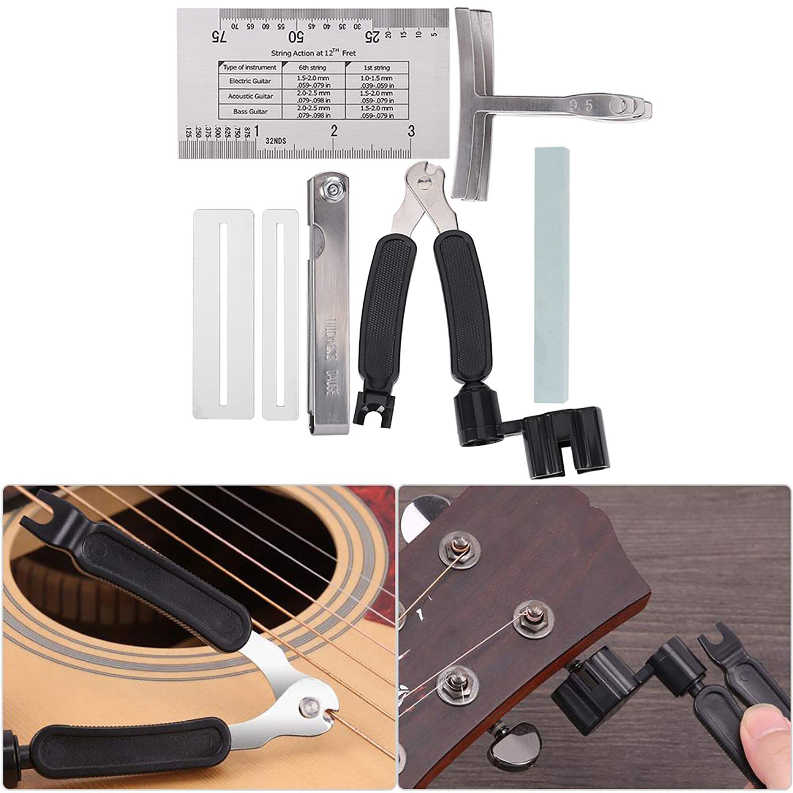 Cordes Guitares Electriques Ensemble D'outils De Guitare Comprenant Des Protections De Touche Corde Guitare électrique ✔Réglage de l'instrument: le télémètre peut effectuer les mesures et les ajustements nécessaires sur les instruments à cordes. SALALIS Ensemble de règles de manche de guitare Jeu de règles de cou de ✔ Acier inoxydable antirouille: le télémètre est en acier inoxydable de haute qualité, antirouille et résistant à la corrosion, et peut être utilisé pendant une longue période. 0,04 ~ 0,88 mm/0 ~ 0 pouce Nombre de lames : 32 pièces Dimensions métriques (mm) : 0,04, 0,05, 0,06, 0,08, 0,10, 0,13, 0,15, 0,18 , 0,20, 0,23, 0,25, 0,25, 0,28, 0,30, 0,33, 0,35, 0,38, 0,40, 0,43, 0,45, 0,48, 0,50, 0,53, 0,55, 0,58, 0,60, 0,63, 0,70, 0,75, 0,80, 0,88 Taille en pouces : 0., 0015,0., 002,0., 0025,0., 003,0., 004,0., 005,0., 006,0., 07,0., 008,0., 009,0., 010,0., 010,0., 011,0., 012,0., 013,0., 014,0., 015,0., 016,0., 0 17,0., 018 ,0,019,0,020,0,021,0,022, 0,023, 0,024, 0,025, 0,026, 0,028, 0,030, 0,032, 0,035 Entretien polyvalent de la guitare : cet ensemble complet d'outils pour guitare comprend des outils essentiels comme une ponceuse, une jauge de rayon et une règle d'action des cordes, ce qui en fait la solution ultime pour les amateurs d'instruments à cordes Ce kit de réparation de guitare peut être utilisé pour changer les cordes, régler la hauteur, ajuster le mouvement ou vérifier la hauteur des cordes. Convient pour guitare électrique, basse, banjo, mandoline et divers instruments à cordes ✔ Large gamme d'applications: convient à la guitare électrique, à la basse, au banjo, à la mandoline et à divers instruments à cordes. ✔Remarque: Il y a de l'huile antirouille sur la jauge d'épaisseur pour éviter la rouille, ne vous inquiétez pas.